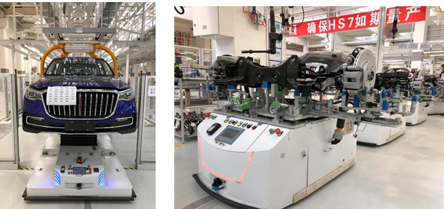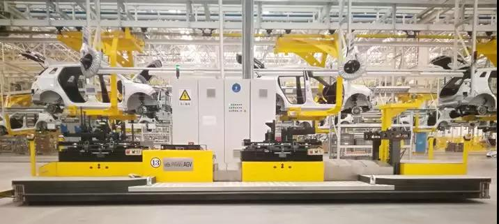 現(xiàn)階段,三豐正在研制新的智能組合分體承載式AGV,由前后各 1 臺承載式 AGV 組成,可分別承載5000kg 以上,有多車聯(lián)動、自動激光測距變距、載件轉(zhuǎn)彎功能、無軌自主導(dǎo)航技術(shù)、非接觸式供電、同步控制、精確定位、安全防護、自動上下料等功能,能實現(xiàn)大工件的無人化搬運作業(yè)和流水線生產(chǎn),取代傳統(tǒng)地板式、拖鏈?zhǔn)捷斔停瑵M足商用車、工程機械、農(nóng)業(yè)機械等行業(yè)超長、超寬、超大機件的柔性搬運,及其快節(jié)拍、高效率的生產(chǎn)需求。