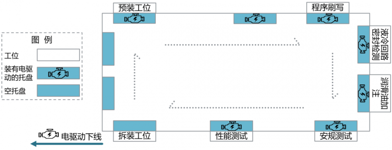 區(qū)別于原先的單工位測(cè)試,回轉(zhuǎn)式自動(dòng)測(cè)試在現(xiàn)有下線測(cè)試形式中速度最快、效率最高,可使裝載有電驅(qū)動(dòng)的托盤在線體上連續(xù)運(yùn)行,并與各測(cè)試工位自動(dòng)對(duì)接測(cè)試,輕松應(yīng)對(duì)多達(dá)數(shù)十項(xiàng)的測(cè)試項(xiàng)目,實(shí)現(xiàn)電驅(qū)動(dòng)的連續(xù)下線。