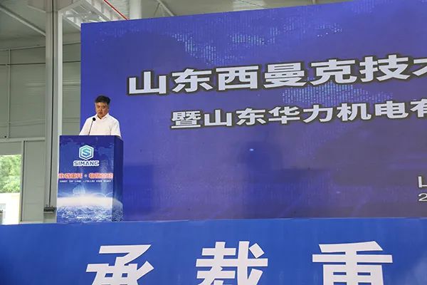 山東華力機電有限公司董事長郭永旭先生發表致辭,對出席慶典的各位嘉賓表示熱烈的歡迎。郭董提到,山東西曼克技術有限公司在高書記、李縣長等縣直各部的大力支持下終于在今天建成開業投產,該項目第一期新建高標準廠房70000平方米,即將開建的第二期工程再建高標準“員工之家”樣式的廠房106000平方米,預計明年的今天建成投產。郭董對華力機電公司從2011年至今的發展與成就進行了總結,他指出,華力機電從銷售收入只有1億元,通過十年的拼搏到20年實現銷售收6. 8億元,產品也在不斷地更新換代,新技術新產品不斷涌現,并且得到了良好的市場應用。郭董表示,隨著西曼克公司的新廠落成開業,有決心有信心更有底氣,把機器人產業做強做大,用優異的成績,來回報各位領導、各位客戶、各位供應商和各位朋友的大力支持。