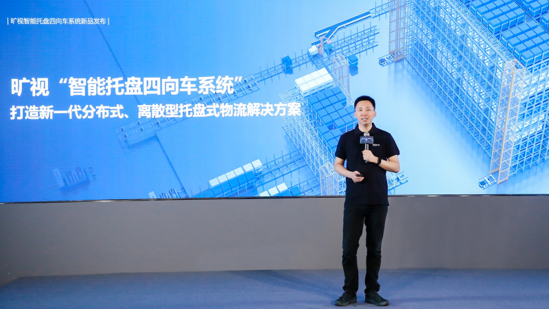 曠視聯合創始人、物流業務事業部產研負責人唐文斌發布曠視智能托盤四向車系統