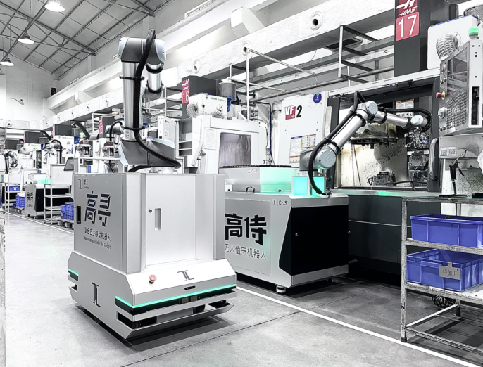 里工是一家擁有36年歷史的精密加工企業(yè),內(nèi)部的“未來車間”是一個24小時運作的離散型柔性化生產(chǎn)場所,里面配置了近百臺國際知名品牌的數(shù)控加工設備。2019年開始未來車間逐步升級智能化生產(chǎn),數(shù)控加工設備上下料工序已由數(shù)十臺智能無人值守機器人來全程操控。2021年智能化改造繼續(xù)升級,未來車間相繼投入3臺高尋復合自主移動機器人用于生產(chǎn)環(huán)節(jié)中的物料流轉。高尋的靈活安全設計基于智能制造行業(yè)的新要求,與人互動并打造一個安全協(xié)同的工作環(huán)境。高尋裝載多重傳感器并深度融合使得它具備360度無死角感知能力,能主動繞障和停駛。在高尋投產(chǎn)后,車間一線員工花費在不產(chǎn)生直接經(jīng)濟效益的物料運送的時間得到極大的縮減,人與生產(chǎn)的共生關系被進一步改寫且生產(chǎn)效率和生產(chǎn)品質(zhì)得到更有效保障。