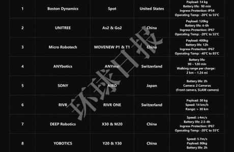 世界十大智能機(jī)器狗發(fā)布,五家中國企業(yè)上榜,“杭州四小狗”占領(lǐng)三席