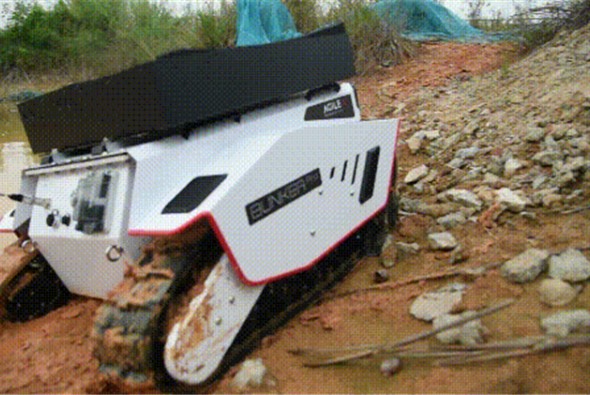 該機(jī)器人腿部結(jié)構(gòu)由六個(gè)裝有輪子的驅(qū)動(dòng)器組成,機(jī)器人在平地上使用輪子,而在樓梯等有高度差的地方則使用輪子和腿來(lái)上下移動(dòng)...