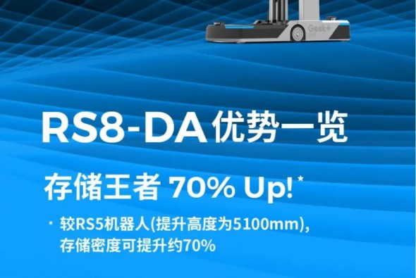 全球AMR引領者極智嘉(Geek+)今日重磅發布一款最大提升高度達8145mm的全新貨箱機器人RS8,刷新業內貨箱機器人高度極限!