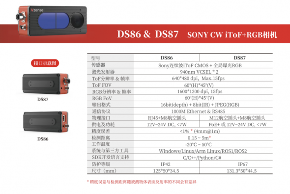 瞄準(zhǔn)AGV/AMR領(lǐng)域-維感科技發(fā)布高性價(jià)比RGB-D ToF相機(jī)DS86/87