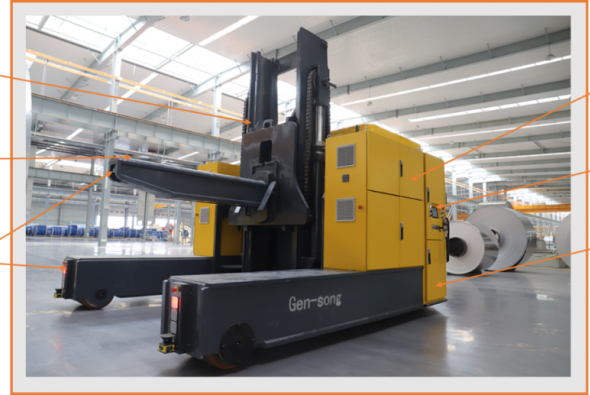 采用叉車式激光導(dǎo)航實(shí)現(xiàn)超重載(20噸級(jí)+)、無容器、大尺寸、多形狀約束條件下安全防護(hù)等級(jí)、定位精度、接駁形式等無人化作業(yè)...