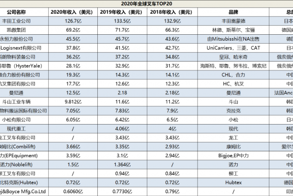 豐田、凱傲、永恒力、三菱等叉車巨頭均已入局!