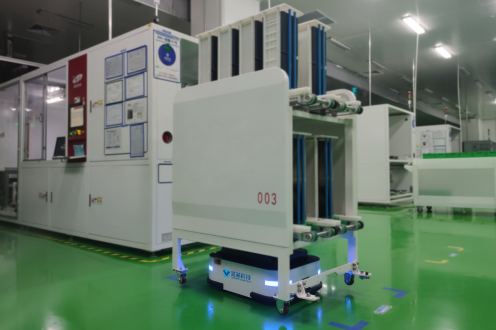 使用AMR配合上層系統,實現整廠從發料機到制絨,制絨到擴散,擴散到激光,激光到蝕刻,蝕刻到退火,退火到背鈍化,背鈍化到背膜,背膜到正膜,正膜到激光開槽的全自動搬運流程。