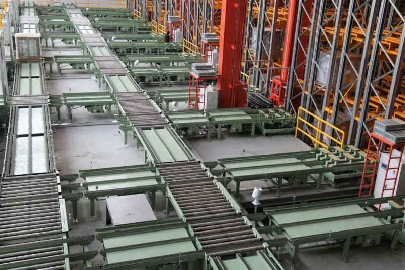 由鏈條輸送機和滾筒輸送機組成的環(huán)形輸送線,實現(xiàn)托盤輸送搬運入庫自動化,經過站臺入庫的成品托盤會由輸送線輸送至對應的立體庫巷道入口。
