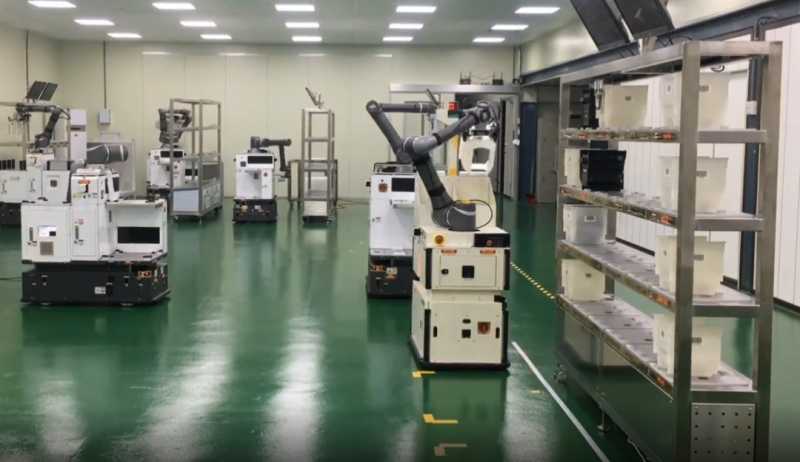 但FAB工廠的晶圓制造AMHS要進(jìn)一步提升產(chǎn)能和效率,僅依靠OHT工作效率的提升是不現(xiàn)實(shí)的。OHT受制于軌道鋪設(shè)、單維運(yùn)動(dòng)等因素,在未覆蓋區(qū)域的人工干預(yù)是必要的。而要實(shí)現(xiàn)全廠OHT覆蓋,AMHS系統(tǒng)的成本會(huì)非常高,而柔性極強(qiáng)的移動(dòng)機(jī)器人可以打通這些節(jié)點(diǎn),連通FAB工廠凈室和非凈室的物料交互,實(shí)現(xiàn)了整個(gè)FAB工廠的智能制造。