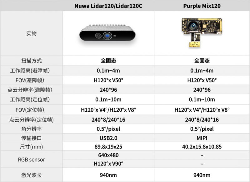 產(chǎn)品將重點(diǎn)針對機(jī)器人應(yīng)用領(lǐng)域,有效解決導(dǎo)航、避障功能模塊分離造成的機(jī)器人整機(jī)產(chǎn)品形態(tài)設(shè)計(jì)困難、傳感模塊多而成本高的問題。此外,傳統(tǒng)的LDS、單點(diǎn)/多點(diǎn)dToF線掃導(dǎo)航模塊都需要采用機(jī)械式或半固態(tài)的設(shè)計(jì),可靠性易受影響,而Nuwa-Lidar120和PurpleMix120都采用了全固態(tài)的方案,產(chǎn)品內(nèi)部沒有任何的機(jī)械振動和微機(jī)械振動,是針對產(chǎn)品可靠性和壽命優(yōu)化最理想的方案之一。