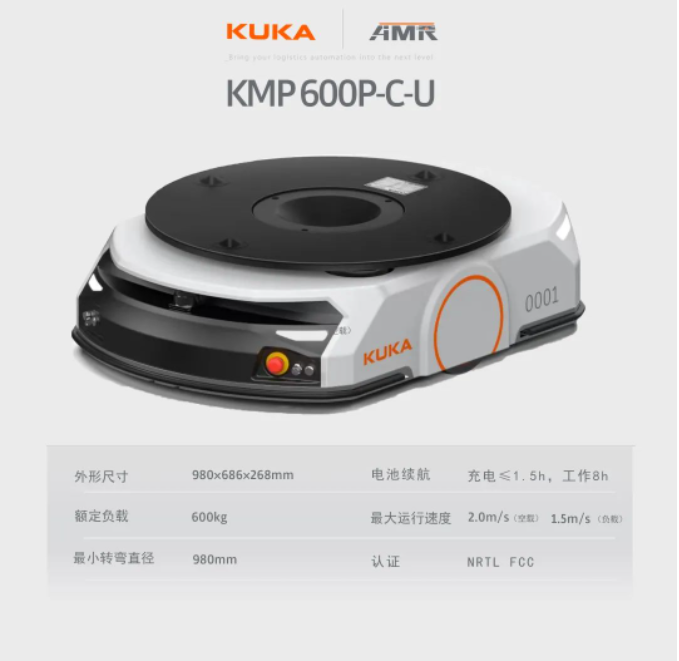 KMP 600P-C-U是針對倉儲物流行業(yè)發(fā)布的全新基于KUKA Navigation Solution二維碼導航的移動機器人產品,是繼KMP 600i和KMP 1500i之后推出的又一款重磅平臺型產品。KMP 600P-C-U圍繞“智能靈活、穩(wěn)定高效”全方位實力輸出,以超預期的性能和實力,助力客戶實現(xiàn)真正的無人化作業(yè)。