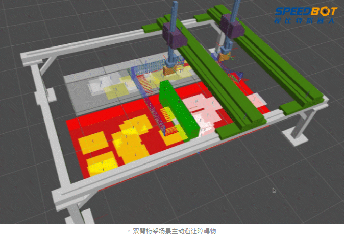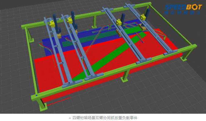 2)多臂共軸無碰運(yùn)動(dòng)規(guī)劃,實(shí)現(xiàn)多臂桁架機(jī)器人在共享工作空間內(nèi)高速無碰、靈敏作業(yè),無需人為干涉。
