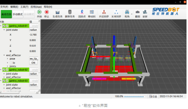 在使用SpeedTruss智能桁架控制器時(shí),用戶只需在軟件中調(diào)用任務(wù)指令接口即可實(shí)現(xiàn)相應(yīng)功能,無需進(jìn)行額外的開發(fā)工作,輕松實(shí)現(xiàn)多臂桁架機(jī)器人的柔性運(yùn)動(dòng)控制。