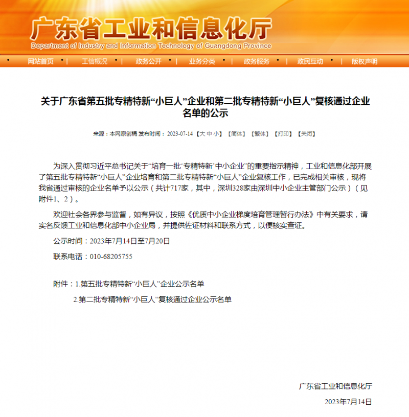 2023年7月14日,廣東省工業(yè)和信息化廳發(fā)布了《關(guān)于廣東省第五批專精特新“小巨人”企業(yè)和第二批專精特新“小巨人”復(fù)核通過企業(yè)名單的公示》,廣東泰坦智能動力有限公司通過國家級專精特新企業(yè)審核,榮獲“小巨人”稱號。