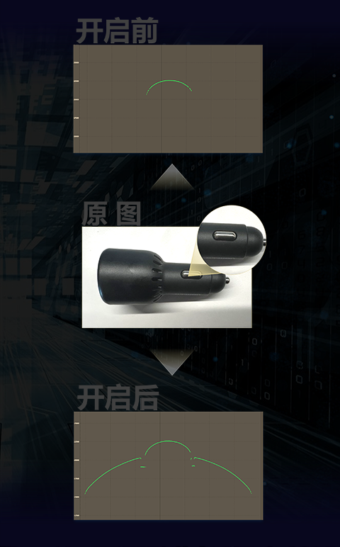 寬動態處理算法將不同曝光參數融合處理,讓傳感器可同時應對高反光、高吸光材質的輪廓提取
