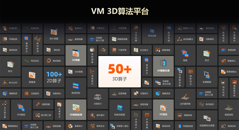 軟件繼承了原有的2D視覺算法模塊,集成機器視覺多種算法組件,實現2D和3D視覺檢測方案的整合。