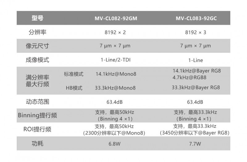 MV-CL082-92GM采用2線7μm COMS Sensor,保證高感光的基礎(chǔ)上可支持2-TDI成像提亮,搭配高信噪比模式,展現(xiàn)更優(yōu)圖像品質(zhì)。