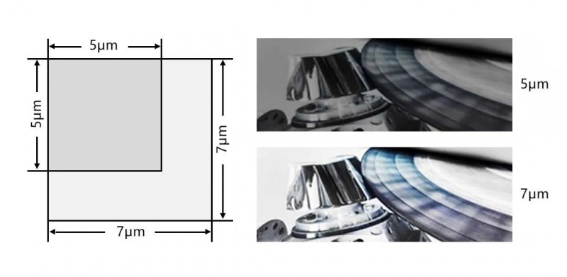 新款相機(jī)像元尺寸為7μm × 7μm,感光面積增大,看見更多細(xì)節(jié)、有效提升亮度,在曝光時(shí)間受限或高行頻需求場(chǎng)景中可一展身手。
