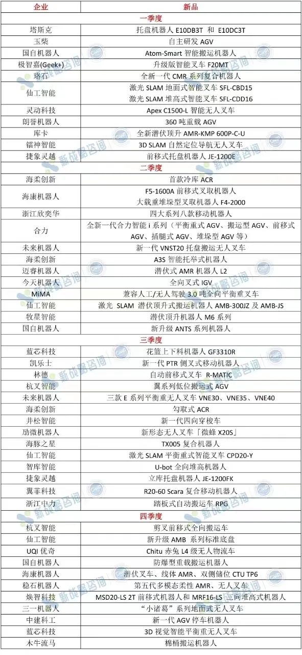 表:2023年AGV/AMR行業(yè)新產(chǎn)品(根據(jù)公開信息整理,如有未完善之處,請(qǐng)指正!)