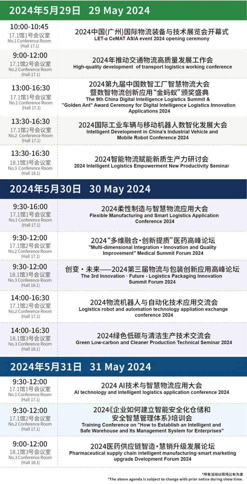 LET 2024將舉辦近20場(chǎng)高質(zhì)量同期活動(dòng),與物流大咖、資深人士共同探討2024破“卷”之道,重磅品牌活動(dòng)——第9屆數(shù)智物流創(chuàng)新應(yīng)用"金螞蟻"頒獎(jiǎng)盛典將于展會(huì)首日重磅來(lái)襲。三天展期活動(dòng)主題覆蓋新質(zhì)生產(chǎn)力、柔性制造、AI技術(shù)應(yīng)用、移動(dòng)機(jī)器人、物流機(jī)器人、智能包裝、醫(yī)藥物流、綠色低碳等熱門(mén)領(lǐng)域。