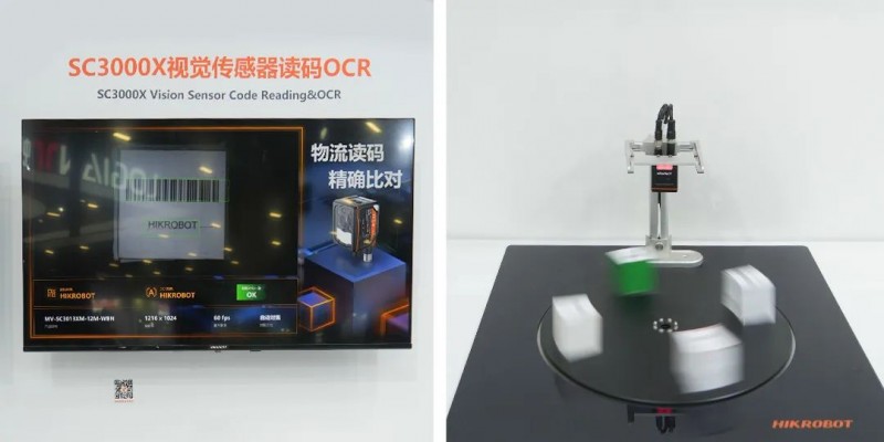該相機(jī)集成像、算法、存儲(chǔ)、通信于一身,內(nèi)部嵌入了讀碼、有無、正反、測(cè)量、識(shí)別和計(jì)數(shù)等防錯(cuò)檢測(cè)算法,充分保證信息讀取的準(zhǔn)確性。現(xiàn)場(chǎng)展示SC3000X對(duì)物流面單碼和OCR的讀取情況,即便面單在轉(zhuǎn)盤上高速轉(zhuǎn)動(dòng),相機(jī)仍可穩(wěn)定讀取作業(yè),且對(duì)碼和字符進(jìn)行對(duì)比,是3C流通行業(yè)追溯信息的重要保障。