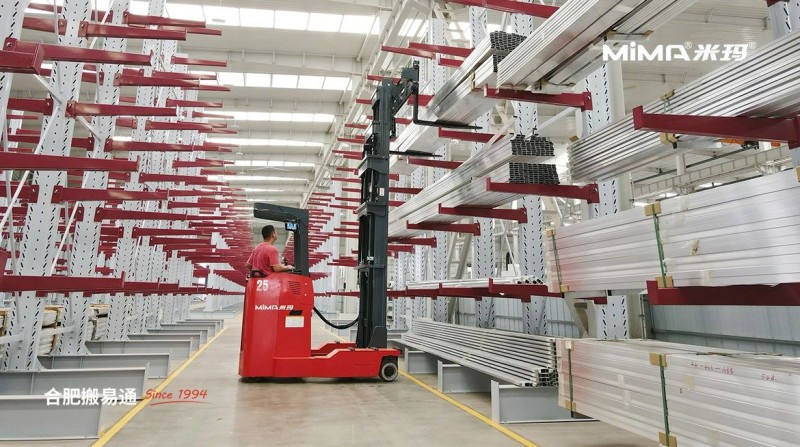 2、為了滿足長重物料的靈活搬運需求,建議客戶采購并使用MiMA米瑪窄體全向叉車MQ25,這款叉車額定載荷2.5噸,擁有多種行駛模式,側行通道更小,能夠完美適配窄巷道作業環境。