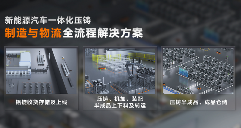 隨著一體化壓鑄新工藝的不斷成熟和普及,新能源汽車主機廠也面臨著諸多痛點,包括勞動強度大、作業(yè)安全問題,以及高節(jié)拍生產(chǎn)的要求。面對這些難題,海康機器人以AMR、機器視覺及強大的平臺軟件為載體,推出新能源汽車一體化壓鑄制造與物流全流程解決方案。