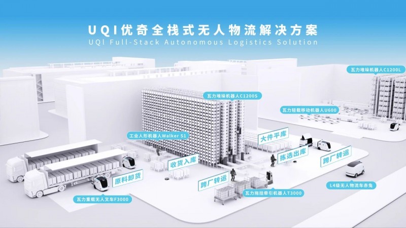 UQI優(yōu)奇通過工業(yè)人形機(jī)器人Walker S1、Wali瓦力工業(yè)移動(dòng)機(jī)器人T3000與L4級(jí)無人物流車Chitu赤兔的無縫協(xié)作,實(shí)現(xiàn)了從分揀、搬運(yùn)到配送的室內(nèi)外一體化的全自動(dòng)流程,這也是行業(yè)首個(gè)人形機(jī)器人與無人物流車、工業(yè)移動(dòng)機(jī)器人和智能制造管理系統(tǒng)(MES)協(xié)同作業(yè)的應(yīng)用案例,在應(yīng)用創(chuàng)新和實(shí)現(xiàn)難度上達(dá)到了全球領(lǐng)先水平。在該解決方案中,工業(yè)人形機(jī)器人的應(yīng)用,幫助客戶打通了場(chǎng)內(nèi)物流的最后10米,完成無人物流的真正閉環(huán)。