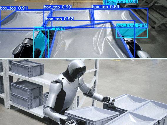 第一,自研視覺(jué)編碼器基座,構(gòu)建精準(zhǔn)環(huán)境感知。優(yōu)必選以ViT作為視覺(jué)編碼器原型,結(jié)合Co-DETR檢測(cè)頭,依托Object 365等開(kāi)源數(shù)據(jù)在通用視覺(jué)任務(wù)上進(jìn)行預(yù)訓(xùn)練,并通過(guò)多階段模態(tài)對(duì)齊機(jī)制實(shí)現(xiàn)了視覺(jué)-語(yǔ)言模態(tài)的高效融合。最終,在優(yōu)必選機(jī)器人數(shù)據(jù)集上進(jìn)行微調(diào),顯著提升機(jī)器人在工業(yè)場(chǎng)景中對(duì)物體、障礙和操作上下文的識(shí)別能力,為復(fù)雜環(huán)境下穩(wěn)定可靠的多模態(tài)環(huán)境感知奠定了堅(jiān)實(shí)基礎(chǔ)。