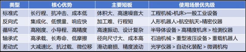 經(jīng)過長期發(fā)展,行星滾柱絲杠已演化出多個結構變體,在傳動效率、承載能力、尺寸適配等方面形成各具優(yōu)勢的類型。其中,通過對不同結構形式的性能對比與工程適配性分析,目前在人形機器人領域得到廣泛采用的是“反向式”行星滾柱絲杠結構。