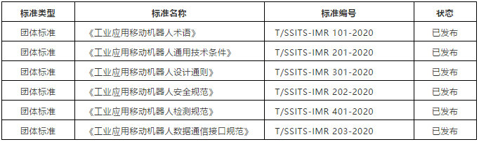 圖表:移動機器人產業聯盟制定的6項團體標準