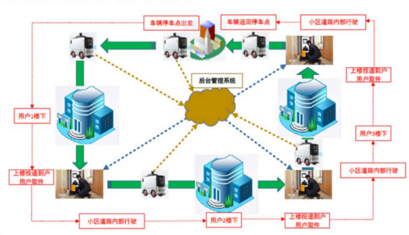 目前無人投遞車作為低速運行的末端作業車輛,結合無人車的技術發展及實際的試運行場景,基于安全性、適用性及可拓展性的考慮,選擇完全封閉或相對封閉的小區、園區、廠區、高等學府作為無人車投遞場景的應用主要模式。