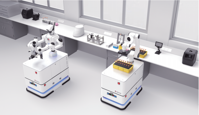 ↑圖為墨影移動協作機器人在生化實驗室應用場景