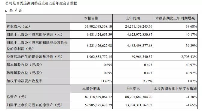 7月24日,海康威視發(fā)布2021年半年度報告。在報告中顯示:報告期內(nèi),公司實現(xiàn)營業(yè)總收入339.02億元,比上年同期增長39.68%;實現(xiàn)歸屬于上市公司股東的凈利潤64.81億元,比上年同期增長40.17%。公司2021年上半年整體毛利率為46.30%。