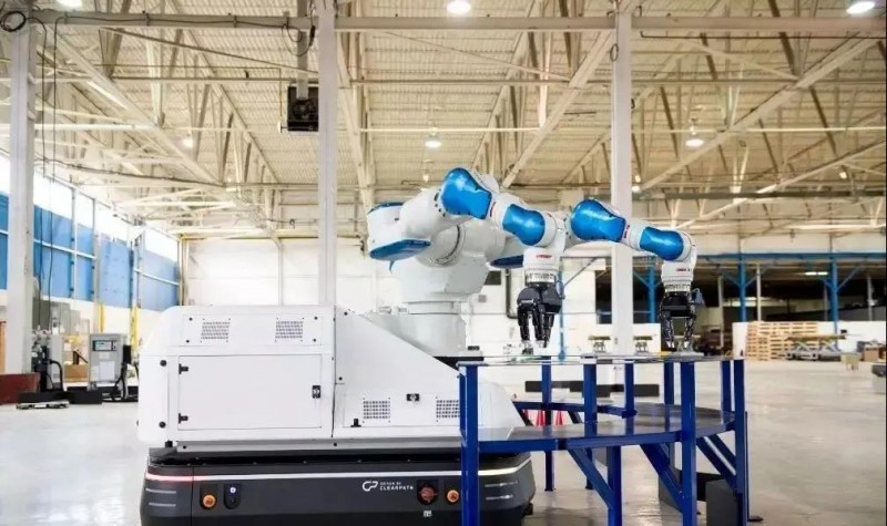 而發(fā)那科則選擇與安吉智能攜手, 2018年,雙方聯(lián)合推出了具有區(qū)域移動(dòng)能力的協(xié)作機(jī)器人,將各自在智能AGV技術(shù)與協(xié)作機(jī)器人領(lǐng)域的優(yōu)勢(shì)相結(jié)合,突破常規(guī)機(jī)器人只能在導(dǎo)軌上作直線運(yùn)動(dòng)的限制、區(qū)域移動(dòng)小車在行駛過程中存在的安全隱患、移動(dòng)后再定位精度低的問題。同時(shí),借助機(jī)械臂內(nèi)置的工業(yè)相機(jī),以及AGV小車中的電池及逆變電流器,讓AGV小車可以自由載著機(jī)械臂到達(dá)指定工位,進(jìn)行產(chǎn)品的精密的定位和抓取,極大地拓展了機(jī)械臂與AGV小車的適用范圍。