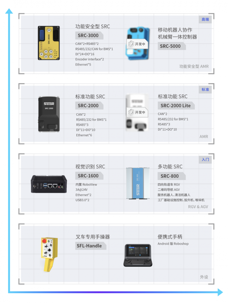 但仙工智能不限如此,現有的控制器產品線已趨于完善,既有標準功能型的控制器,也有功能安全型的控制器,既有高階的控制器,也有入門級的控制器。