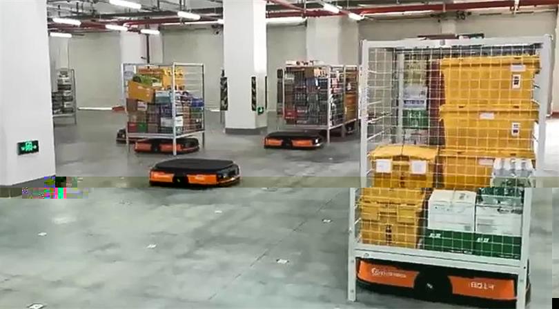 中百物流江夏倉于2020年啟動智慧工廠建設,投入使用潛伏AMR(移動機器人)111臺,實現(xiàn)了2、3、4樓庫區(qū)C類品貨到人揀選,1樓B、C類商品合單后集貨、發(fā)運全流程由AMR轉(zhuǎn)運,大大降低了工人揀選的難度和勞動強度,節(jié)省了人力成本。